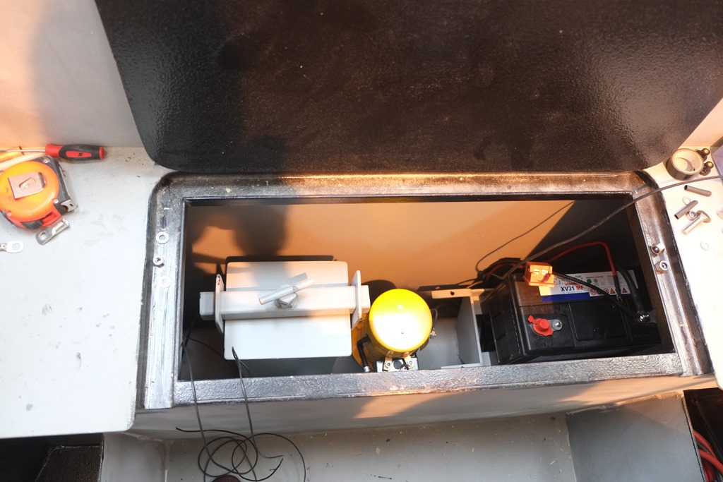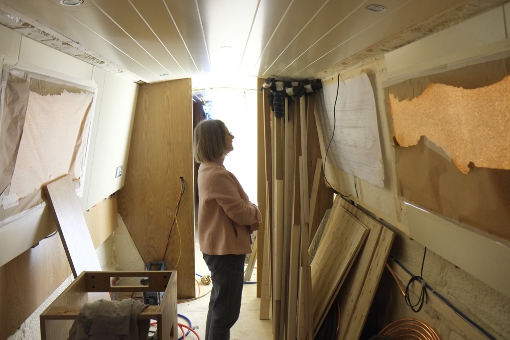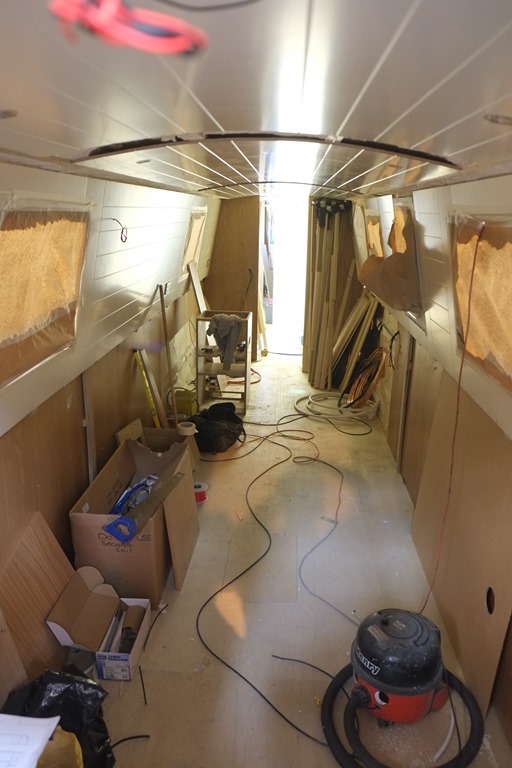 Still, at least it’s suitably primed, and some paint starting to go on makes the boat look much better from the outside, at least. The red paint was sprayed while we were there.