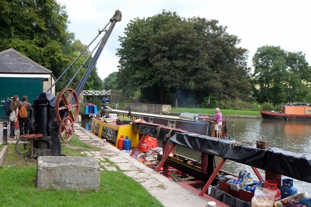 Sunday afternoon bedlam at Bradford Wharf: a deep lock with decent moorings above and below, a winding hole, a busy hire base, a big wide-beam trip boat, pub moorings, water, sewage and rubbish service point and the Friday and Saturday hirers from Hilperton, Caen Hill and Bath all passing through make for occasional chaos and boats everywhere. A good spot for gongoozling as well as mooring for a couple of days!  And a small, friendly and splendid Indian Restaurant within 50 yards. Who could ask for more?