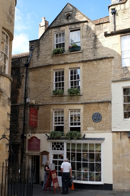 Sally Lunn’s house – the oldest house in Bath, apparently, and the home of the Bath Bun. We couldn’t get in for foreign tourists, so retired to the cafe on Pulteney Bridge.