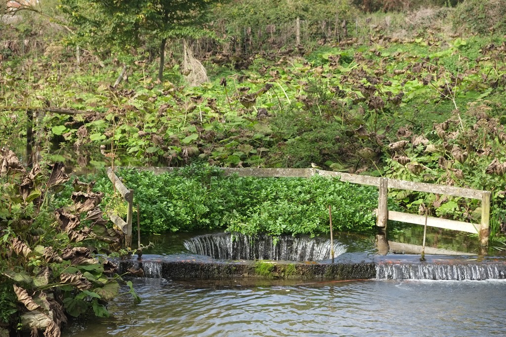 The route runs alongside the River Dunn, which at one point dives under the canal through a circular weir…
