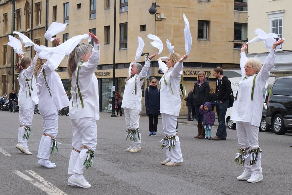 Just before dancing, some stray from a Civil War society angrily read a proclamation forbidding morris dancing in Oxford on a Sunday: the impact was lessened by his dentures coming loose in the excitement. Jackstraws were worth watching, as always.