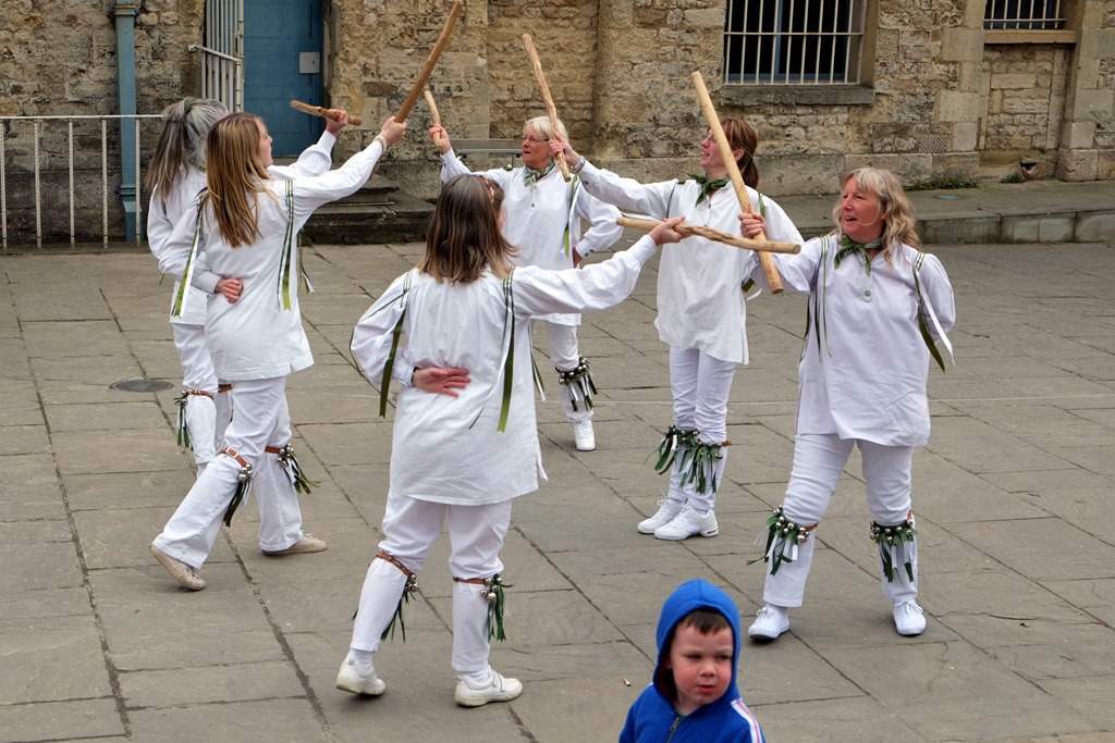 The place was awash with morris dancers all weekend (mutter, mutter), so apparently some pictures must be posted. Managed to restrict things just to Jackstraws – many of the other sides seen were – errr – less than inspiring, if more exotically costumed and made-up.