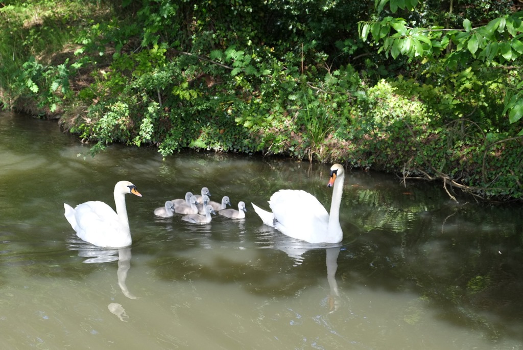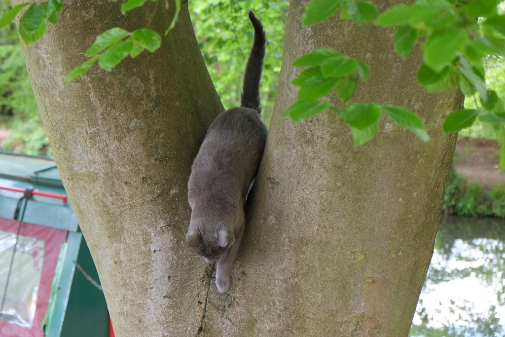 A short trip from Frimley due south, through Bob Potter country (he of Lakeside Club, World Darts Championship, Potters Steak Bar and numerous other ventures) before a swing bridge announced arrival the HQ of the Basingstoke Canal people at Mytchett Canal Centre, which provided an opportunity to fill Song & Dance up with water, and the crew up with lunch. The Captain decided to go tree-climbing.