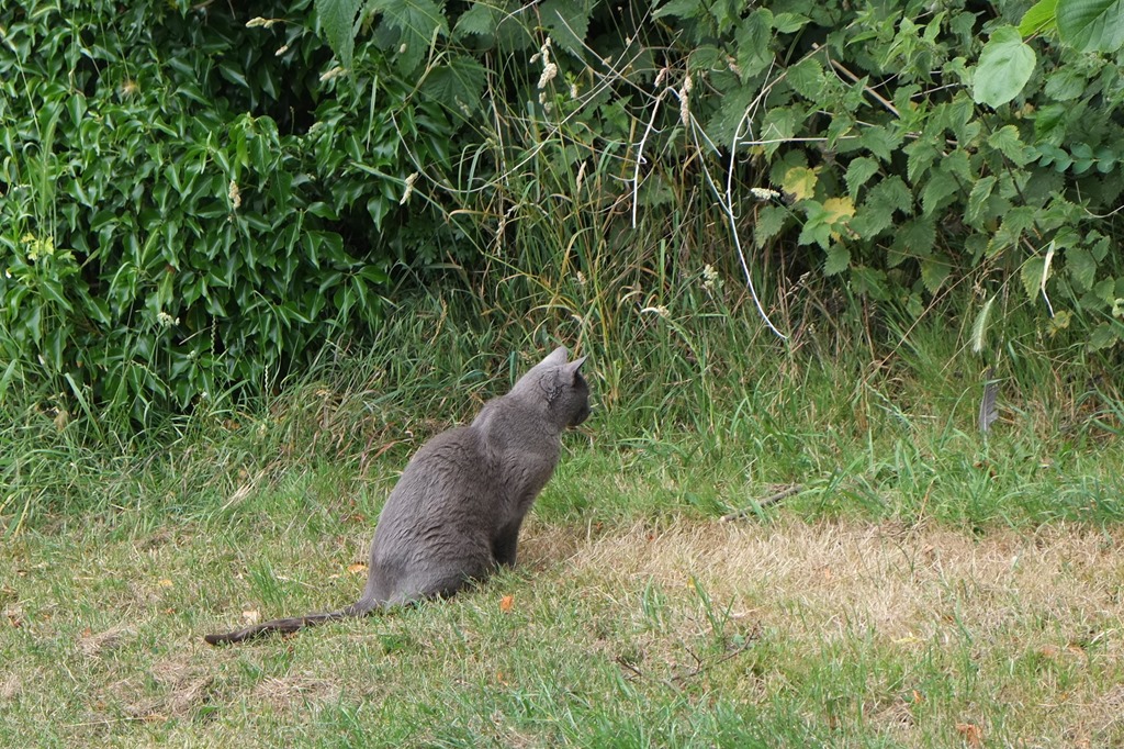 Wandering through Hayes, several bridges had access to shops and services, and were hence busy with boats and towpath drinkers, before we came to Hollybush Bridge, where there were pleasant mooring on one side next to an overgrown country park, and a large, quiet, windowless brick warehouse type of place on the other. The moment we stopped to check it out, Biggles jumped on shore to check it out and disappeared into the woods. That’ll do us, then…