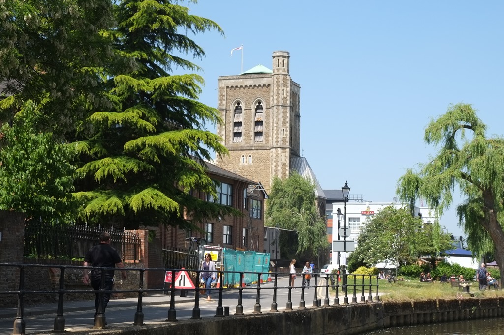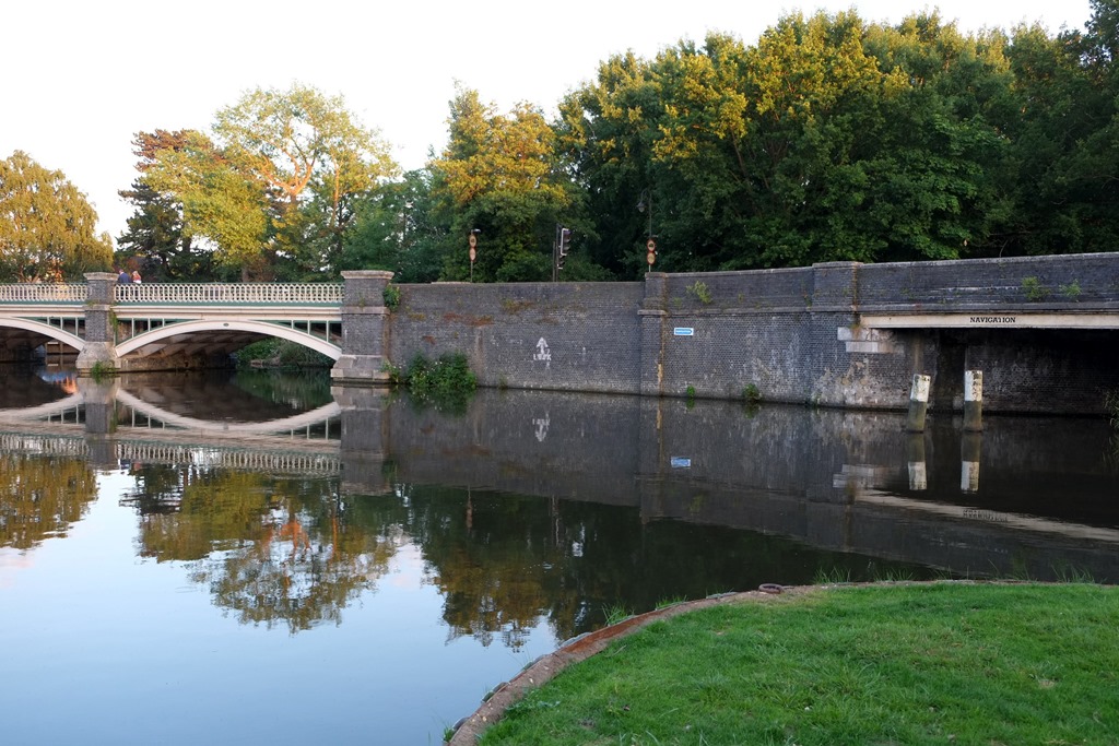 Although we could have stayed another night at Dapdune – it’s tucked out of the way behind the Cricket Club grounds and normally quiet – that evening and on the Saturday, there was going to be a large Beer Festival, and given the noise from a private / setting up party the Thursday night, we decided to set sail late Friday afternoon for a quieter spot, ending up at the perfect mooring found on the way down, near Send Church Bridge and the Sutton Place estate. Sometimes it’s nice being in the middle of town, but it’s usually nicer out in the countryside somewhere…