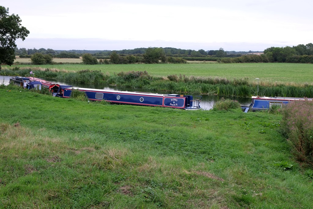 A gentle morning’s ramble along the Nene Way over the hill to revisit Woodford Mill chandlery, and it turned out that the café cum restaurant’s good reputation was well founded. With second breakfast/elevenses/first lunch suitably accomplished with cream tea and cakes we headed back to the boat for second lunch, pausing only to savour the newly fledged swallow chicks whizzing around low level and parting one’s hair. Only to find our nice peaceful mooring spot had filled up with boats, dogs and children. Ah well, some you win!