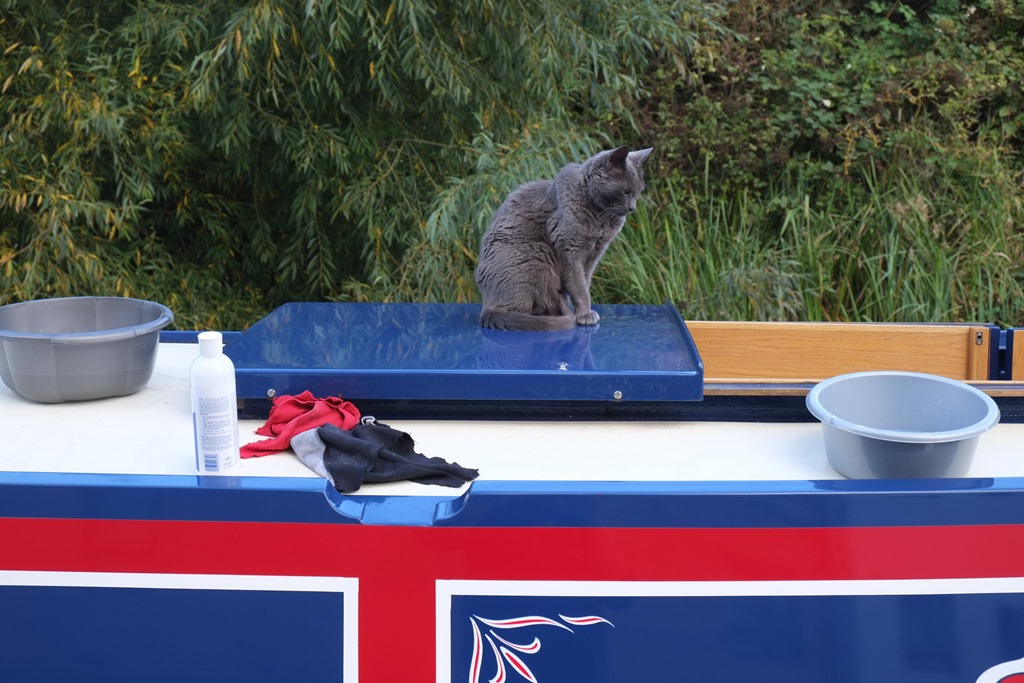Monday saw more lovely weather, as we wound our way back to Watford Locks. On the continent you quite often see large barges with a car parked on top and narrowboats are frequently adorned with bicycles on the roof but we were quite surprised to see this chap bearing down on us. Must be quite a struggle to unload.