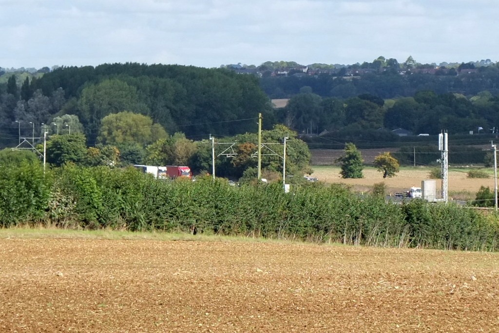 Mooring up properly, Captain and Cook went off for a decent wander, and after about 45 minutes we headed downhill (“White before Red – smack on the head”); there were another five in the queue behind us by then. (Incidentally, the bridge just visible in the picture at 2 o’clock from Song & Dance carries the M1, so not the quietest place to while away some time).