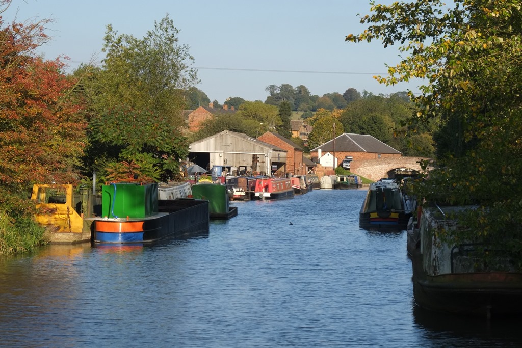 After lunch, the hatches were once again battened down for the transit through Braunston tunnel, then out into the sunshine where – teaming up with another boat – we made short work of the six wide locks down into Braunston – a major place in the history of the English canal system. We luckily found a suitable mooring right in the middle of the waterfront, outside the marina. There’s plenty to see, with boatyards, pumping stations and so on.