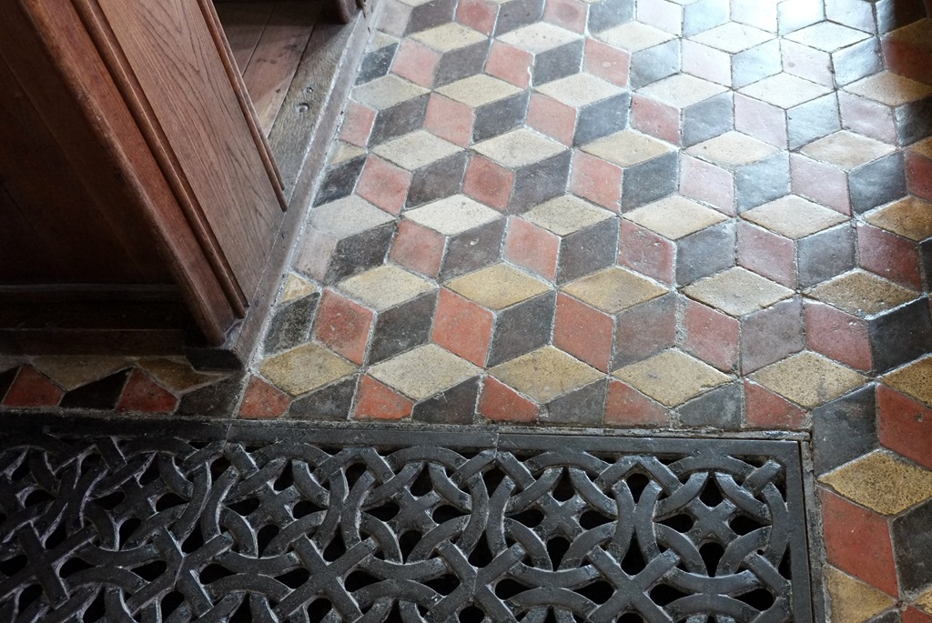 The church’s steeple is visible from far and wide, but the first surprise is the flooring. Fancy knotwork heating grids, and optical illusion tiling isn’t the usual parish church fare.