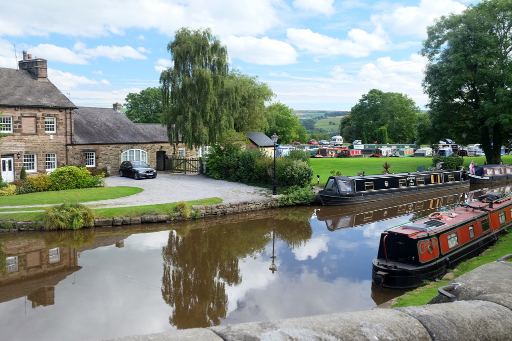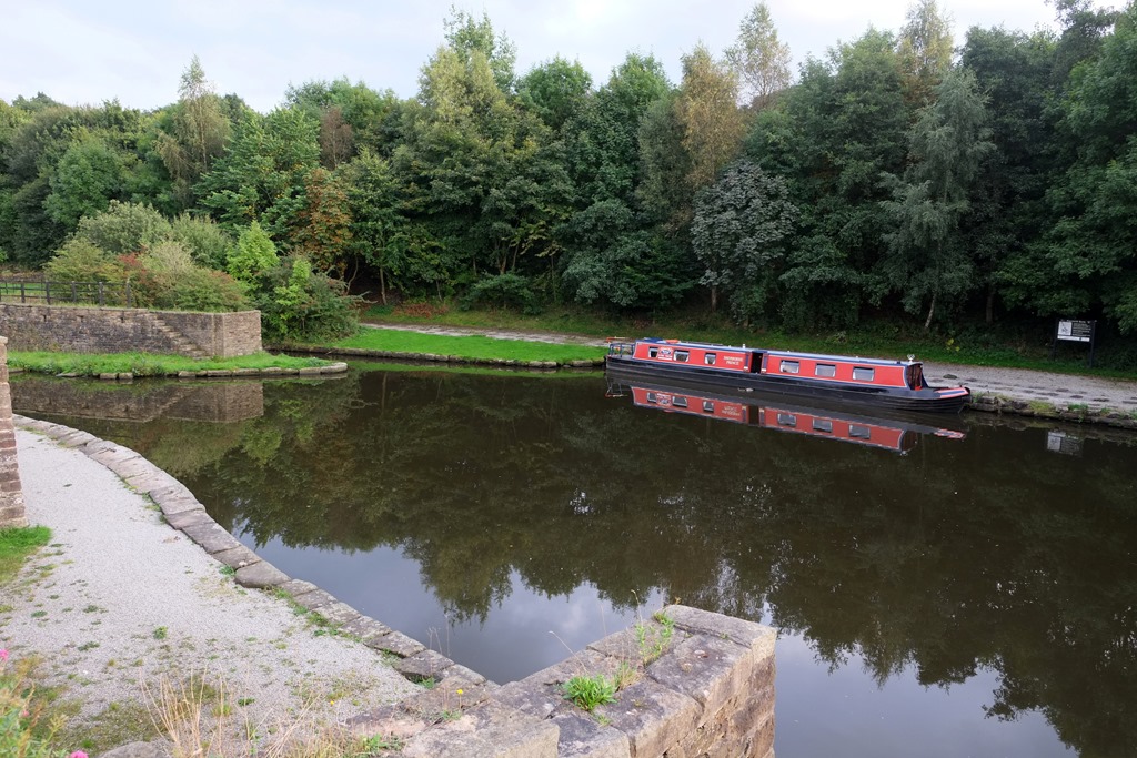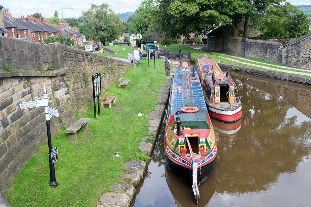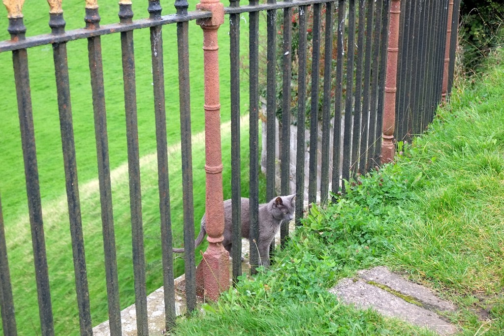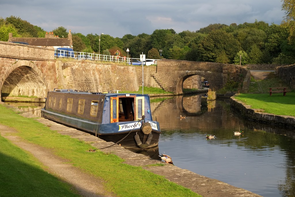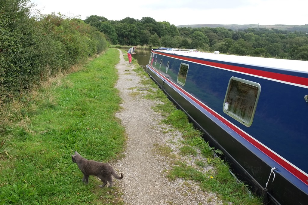 After lunch aboard, we got chatting to a couple of anglers. One of them remarked that it was nice to see a Piper Boat, and told us that he used to work for them some years ago. As was now his regular practice whenever we started gossiping on the towpath, the Captain came out to join us, sitting in the middle of the towpath. Getting bolder during his travels he’s become almost immune to passing dogs, even if we were a bit surprised how he stood his ground at Bollington.