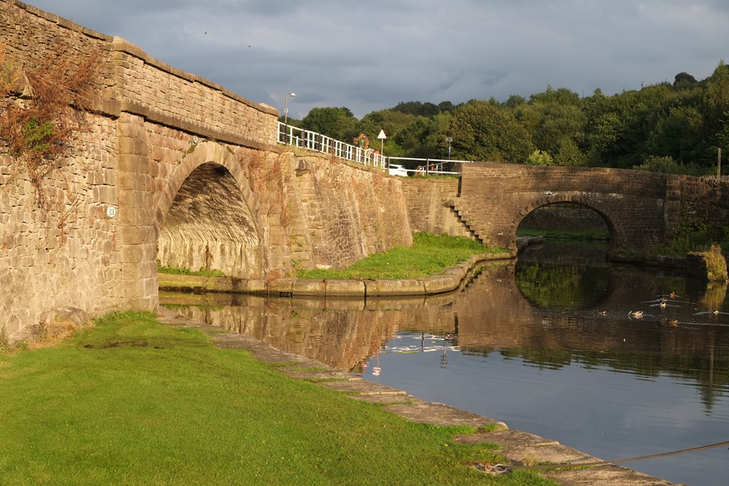 It was a good spot to take a picture of a Macclesfield Canal bridge: they’re rather unusual in that instead of the walls dropping vertically from the widest part, they start curving back as though they completed a proper ellipse under the canal. This, coupled with wide towpaths under the bridges, make them appear wide and easy to navigate. Wrong! If anything they’re even more of a challenge than the narrow ones on the Stratford Canal earlier in the summer – there’s a small underwater ledge on the other side to catch you out too.