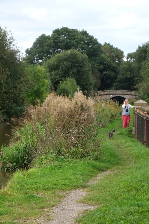 We were even more surprised when four young whippets came bounding along, two attached to a young lady by leashes, two running loose, and he didn’t even bristle much. He just stood in the centre of the towpath and glared at them… and they slowly took a wide detour round him before carrying on their bouncing progress.