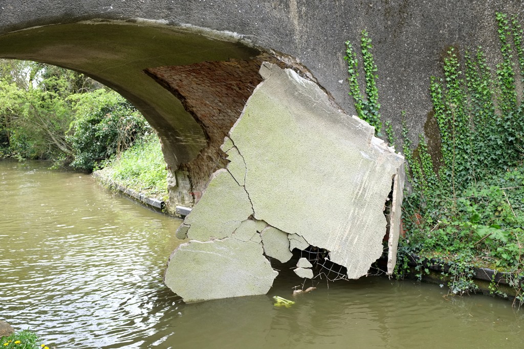 What’s particularly irritating, (apart from no-doubt endless hassles with insurance companies and the like to come: they’re not as organised as the car people), several of the nearby long-term moorers wandered past saying that they had been reporting the dodgy state of the rendering to passing CaRT staff for over a year! The boat following us was manned by someone who had been a professional builder in an earlier life, and he said it was quite clear from a cursory glance that the rendering had been widely and substantially blown for a long time. Another boater said he had passed under on Saturday, and noticed it was starting seriously to come away, but sadly hadn’t reported it’s parlous state to CaRT.