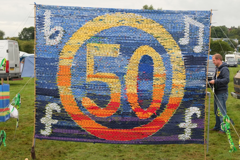 It was actually the 50th Bromyard Folk Festival, so someone made this tapestry. Meanwhile, Earlsdon – who process everywhere – clogged off from the festival site to dance up in town. In daylight this time.