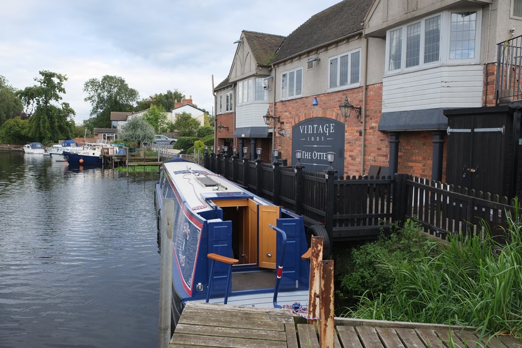 And so, at about 16:30 we set off (late even for us). Or rather tried to. One of the boats next to us – it arrived while we were away – was tied with a top rope to Song & Dance’s central roof cleat. Not uncommon when moored on short pontoons, it helps stop the far/loose end from wandering around in the breeze. Closer examination showed that it was only tied to Song & Dance. Not to its pontoon, the bank, or anything else. Odder still, the doors at the front and back were wide open, but no one was on board, and we hadn’t seen anyone all day.
