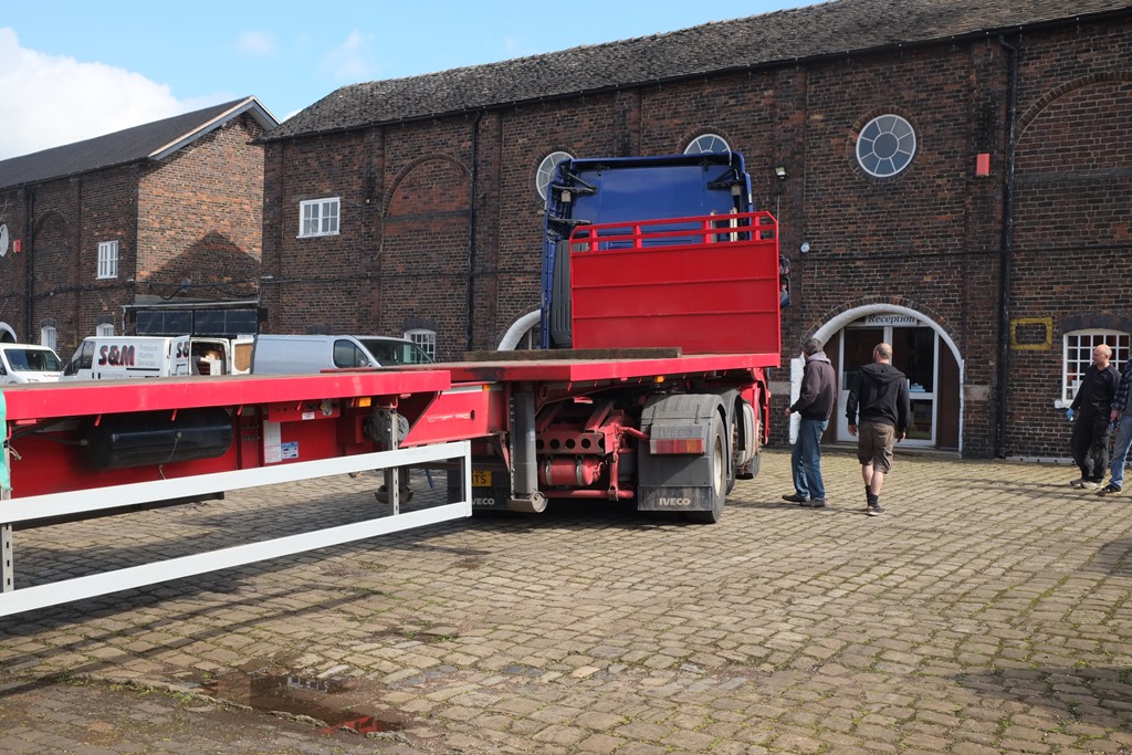 With Song & Dance in mid-air waiting for the lorry to back under it, we realised that it was the same lorry and driver that had broken down all those weeks back. The lorry started this time, but did manage to clout the rudder and skeg while backing under the boat. No damage, it would appear.