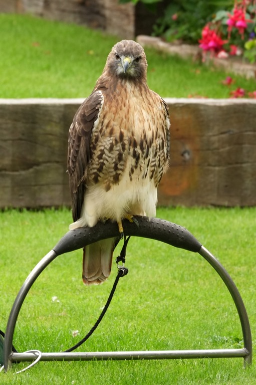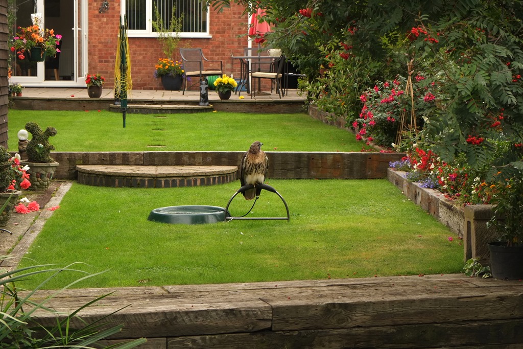 For as long as we could remember, somewhere along the long line of back gardens open to the canal through the three towns, there were two adjacent gardens with aviaries, and invariably, a sizeable hawk sitting on a perch watching the world go by. But we were always past before we knew it. Last time, we made a point of noting it was in Handsacre, so after negotiating the troublesome single file ex-tunnel near there, the camera was ready…