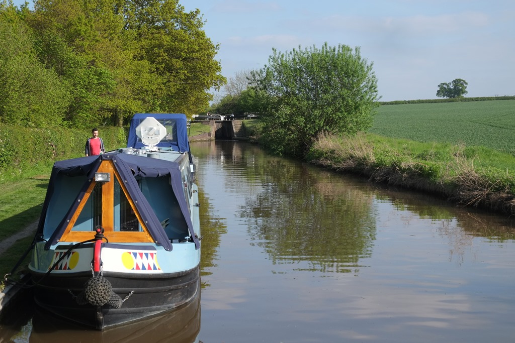 With a gloriously sunny Sunday afternoon in full spate, Fradley Junction was predictably mobbed with people and boats, so we pushed on up through the locks chaos as quickly as possible. On the way in to the junction we noticed a load of parked cars out in the sticks with a sign saying “Fred & Ethel’s wedding”  or words to that effect; passing the Kingfisher Holiday Park car park, that was wall to wall with shiny motorbikes all sporting yellow ribbons.